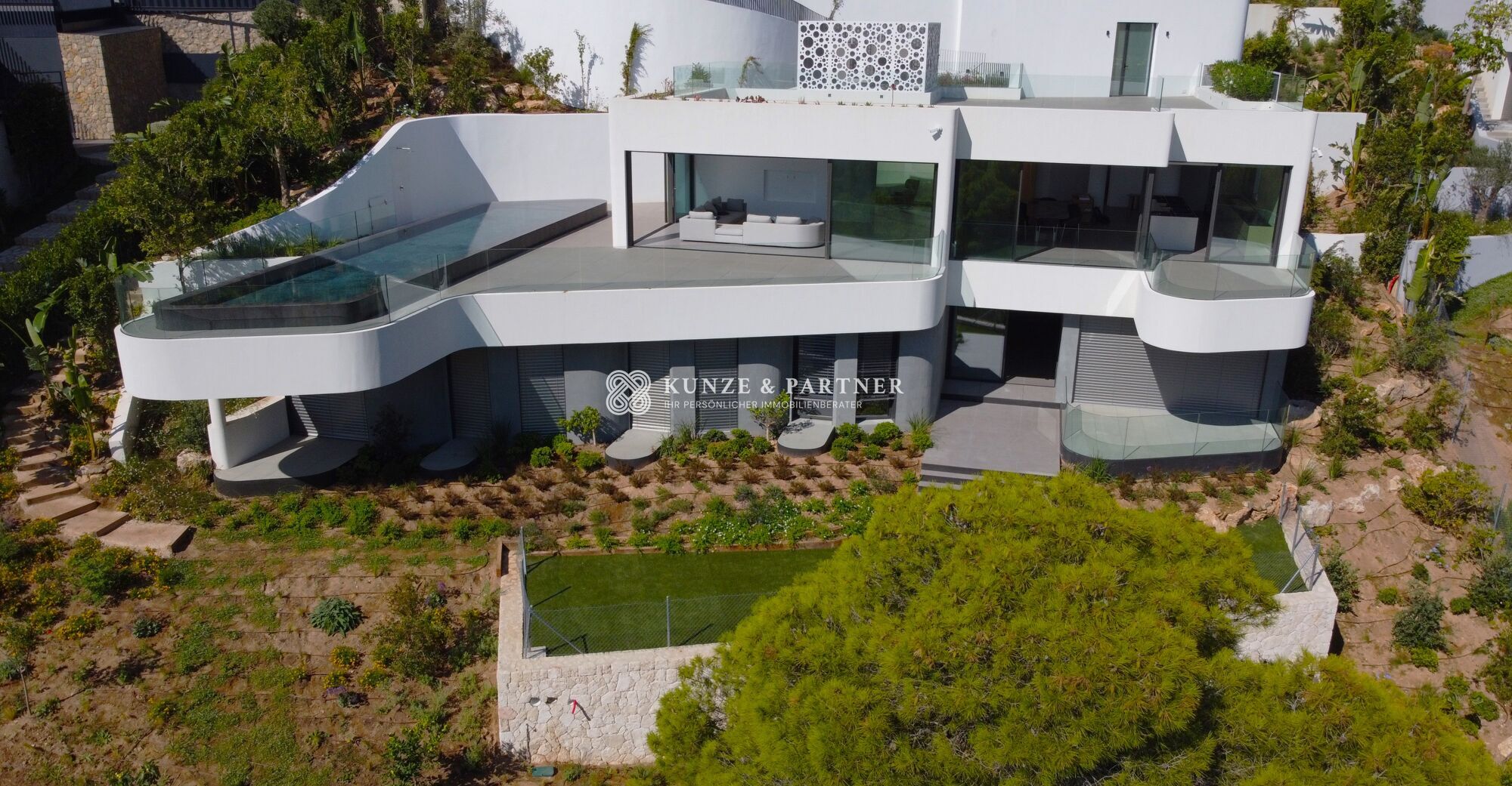 - Dieses herrschaftliche Anwesen im mondänen Son Vida vereint neoklassische Elemente mit einem modernen Interior-Design-Konzept, vielen Kunstobjekten und aktueller Haustechnologie. Mit einem Brunnen, eigener Wasseraufbereitung und einer angemessenen Photovoltaik-Anlage ist diese Villa, bestehend aus drei Häusern auf einem fast 9.000 m² großen Grundstück, weitestgehend autark. Gigantisch sind die Ausmaße der Immobilie. Mit circa 40 Meter Fassadenlänge des Haupthauses, 2.100 m² Wohnfläche, 1.085 m² Nutzflächen, über 820 m² Terrassenflächen, 20 Zimmer, 14 Schlafzimmer und 14 Bädern, Tennisplatz, einem Gym mit Massageraum, einem Dampfbad mit Jacuzzi und Relaxbereich, zwei Garagen für den Fuhrpark, einem Kaminhaus mit Bar wird in kaum einem Privatanwesen im Mittelmeer-Raum mehr Platz geboten. Diese Immobilie ist gleichermaßen für die große Familie, für Anlässe mit vielen Gästen oder auch nur zu zweit wunderbar als Erstwohnsitz oder als Ferienimmobilie zu bewohnen.